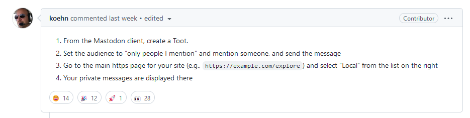 The bug was listed on Github for a week, without any response from the developers, until it suddenly gained traction on the feeds. I think the community response is pretty notable here; mocking and making fun of Wildebeest. It’s never great to get a bug report that your software leaks private messages, but if the community responds with laughing emoji’s that’s certainly not helping.