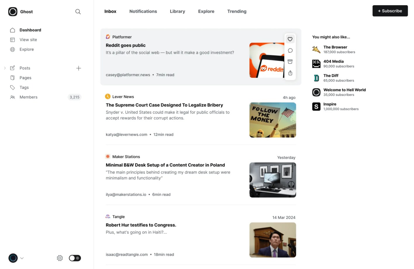 Ghost adding support for ActivityPub has been a top requested for years, and when I asked O’Nolan why now was the right time to implement it, he said that “it feels like we have a critical mass of momentum in 2024 with a significant number of platforms taking ActivityPub seriously – which is creating the type of consumer awareness needed for a new protocol to take off.”